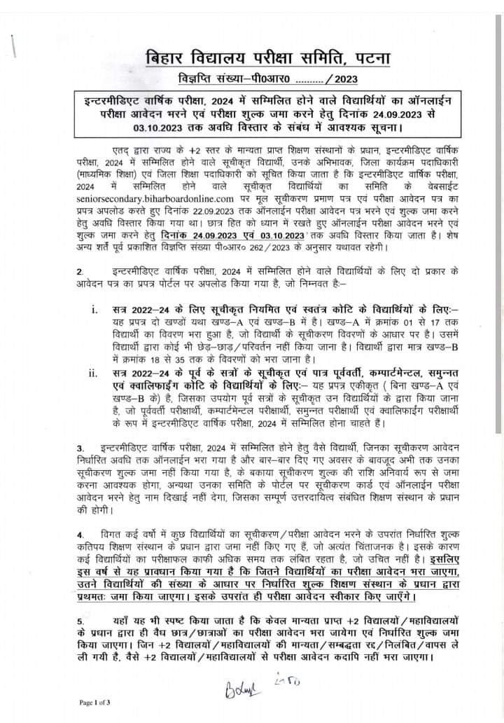 BSEB 12th Exam 2024 Form Fill-up date Extended