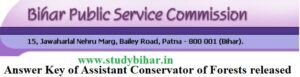 Bihar Public Service Commission (BPSC) releases Answer Key of Assistant Conservator of Forests. All the candidates who are appeared in the Examination can download the Answer Key of Subject 1. General Knowledge and Forestry and Environment. All the Details about this Answer Key Notice are given below. Students can read carefully and download the Answer-Key and also the PDF Notice of Answer Key release.