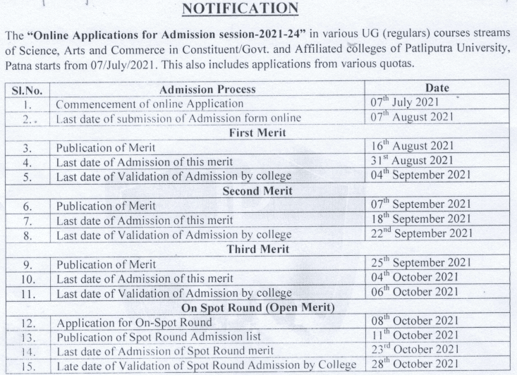 Patliputra University (PPUP) invites application form for Undergraduate (BA, B.SC, B.com) Admission for Session 2021-2024. Admission for UG Part 1 started. Those candidate who are interested they must read full official notification before apply online